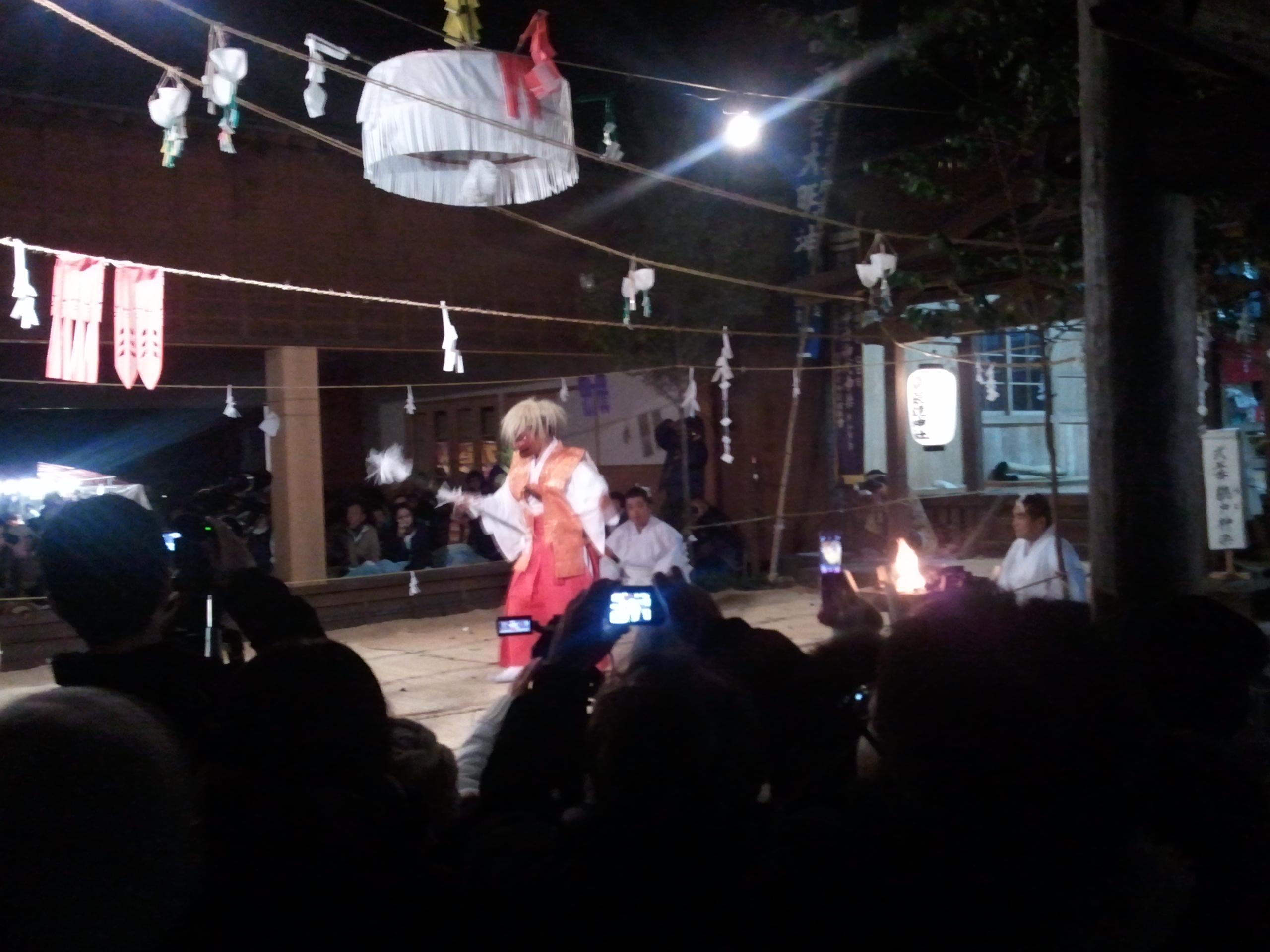 小さいお子さんも夜中に起きては交代で神楽を舞ってました