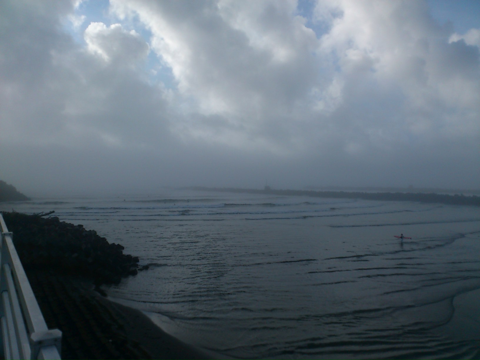 朝から濃い霧のため、ちりめんじゃこ漁はお休みとなりました海岸沿いだけ凄く濃い霧に覆われておりますさすがに視界も悪く危険信号って感じですおそらくこの濃い霧が出てるのもお昼までだと思いますが・・・対岸にある宮崎空港のほうも真っ白に霧で覆われてるため飛行機の便にも影響が出てくるのではと思います写真は工場から車で1分の河口ですサーファーは朝から気持ちよさそうに波乗りを楽しんでます^^浜田水産