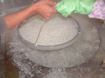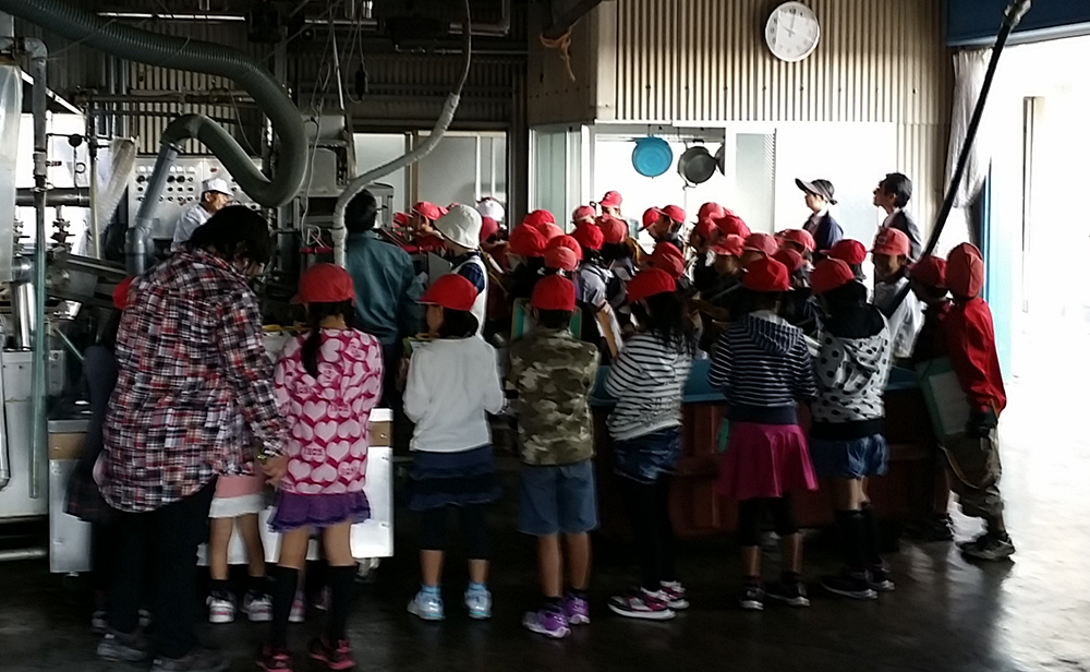 会長(白い帽子)がちりめん加工の流れを説明していました